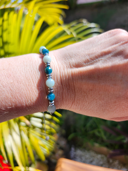 Bracelet ref 39 : Cordon réglable Amazonite, Apatite et Hématite