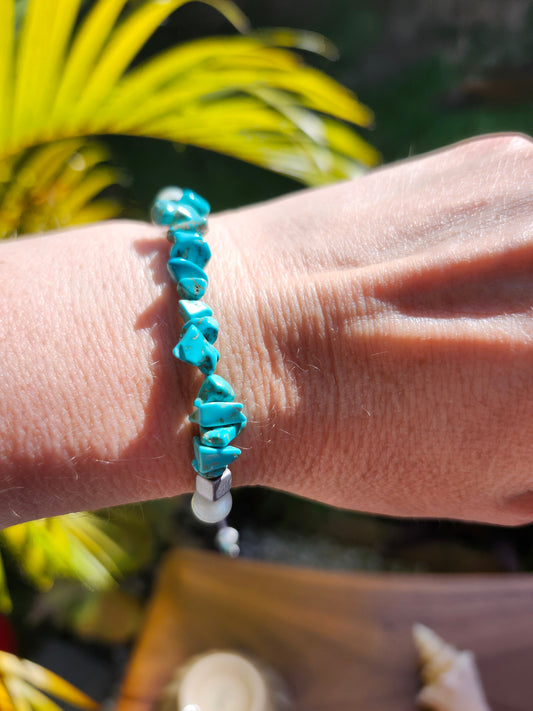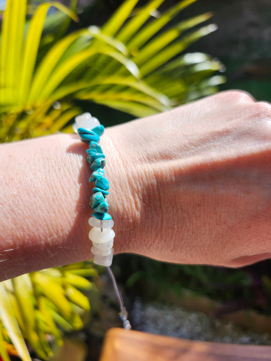 Bracelet ref 41 : Cordon réglable Magnésite et Amazonite