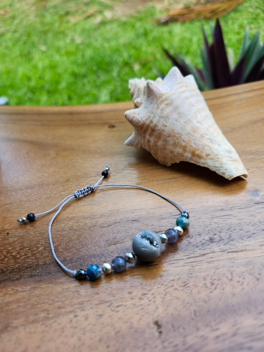 Bracelet ref 43 : Cordon réglable Agate, Iolite et Apatite