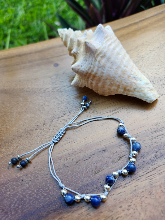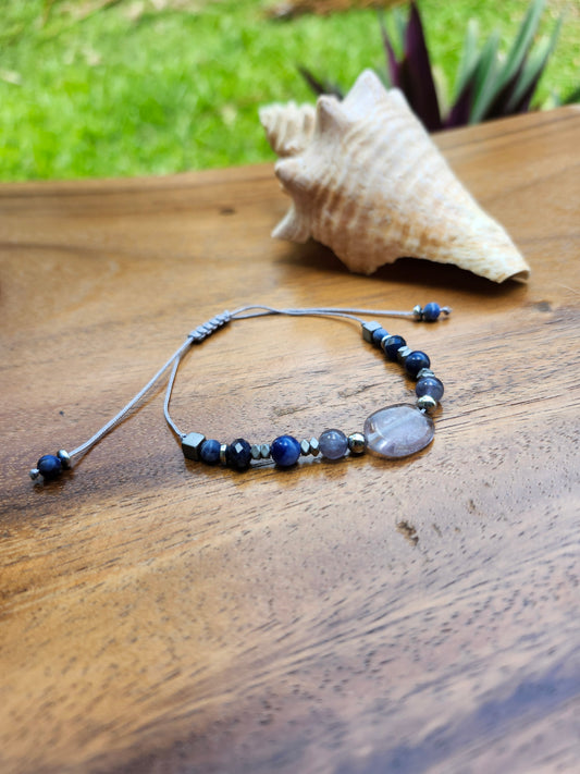 Bracelet ref 100 : Cordon réglable Dumortiérite, Sodalite et Hématite