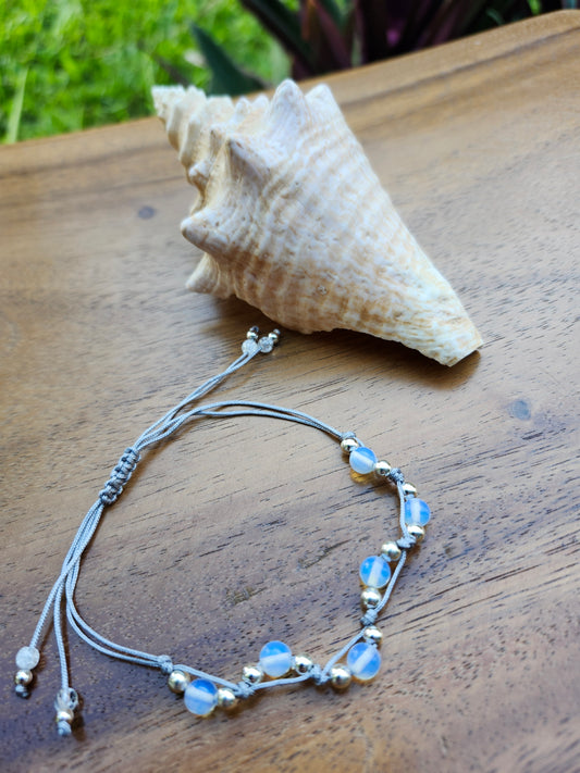 Bracelet ref 47 : Cordon réglable Opaline/ Hématite