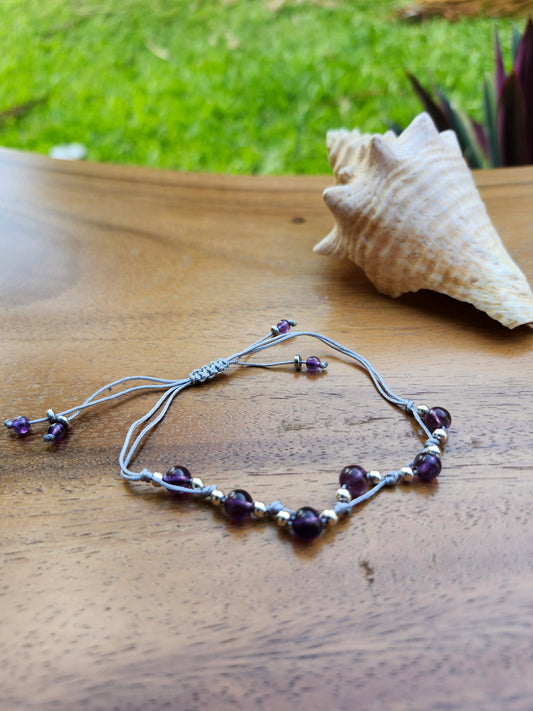 Bracelet ref 48 : Cordon réglable Améthyste/ Hématite