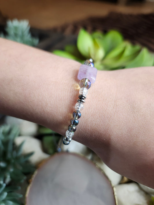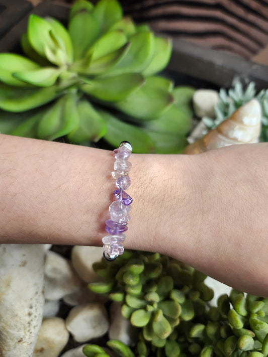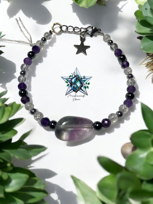Bracelet réf. 3 : Pierres Améthyste, Cristal de roche et Fluorite