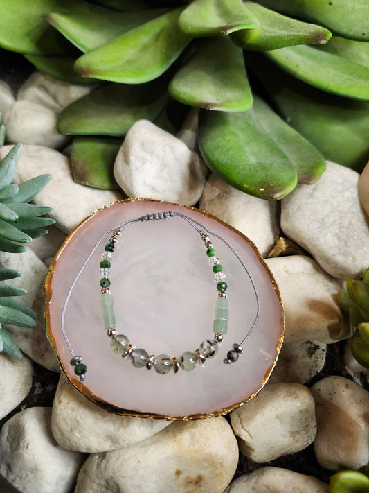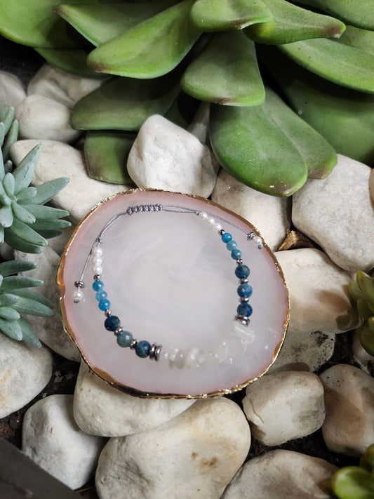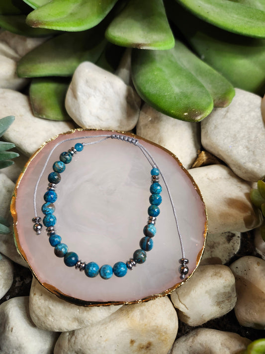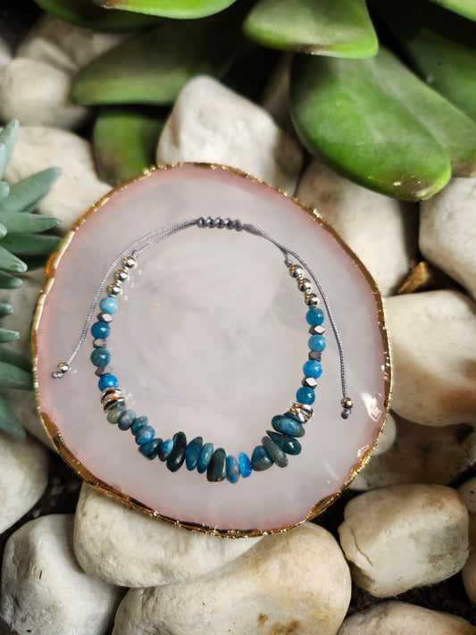 Bracelet ref 94 : Cordon réglable Apatite, Cristal de roche et Hematite