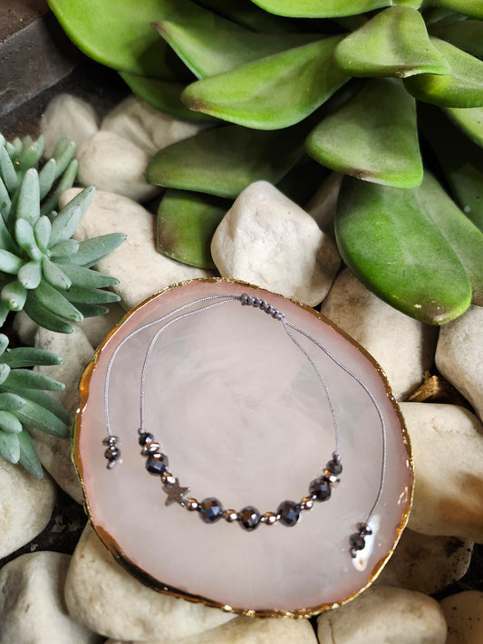 Bracelet ref 86 : Cordon réglable Silicium et Hématite