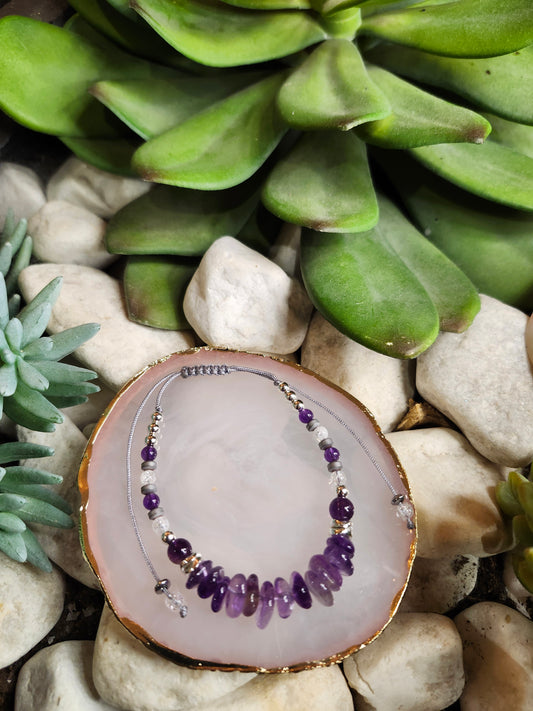 Bracelet ref 88 : Cordon réglable Améthyste, Cristal de roche et Hématite