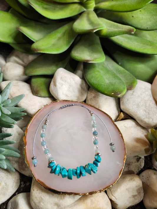 Bracelet ref 90 : Cordon réglable Magnésite, Amazonite, Cristal de roche et Hématite