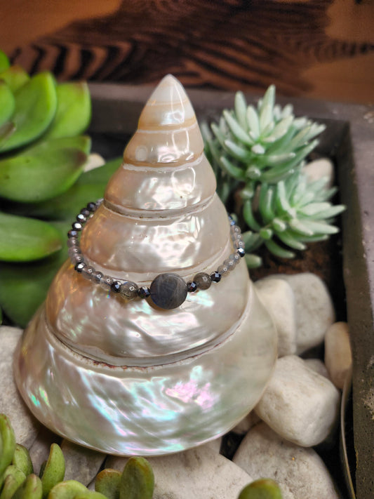 Bracelet ref 96 : Cordon réglable Labradorite, Silicium et Hématite