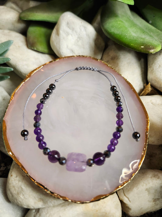 Bracelet ref 99 : Cordon réglable Améthyste et Hématite