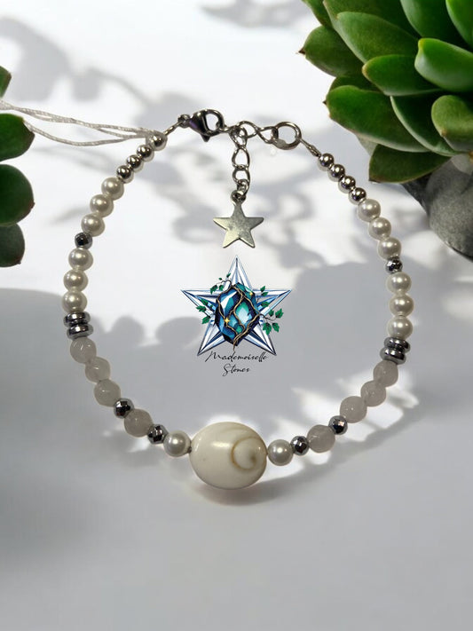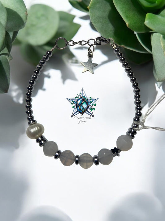 Bracelets réf. 1 : Pierres Calcédoine, Nacre et Hématite