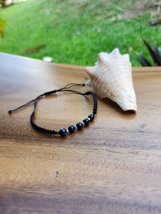 Bracelet ref 98 : Cordon réglable Labradorite, Tourmaline et Hématite