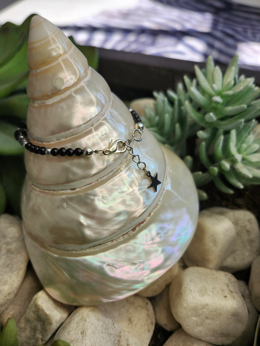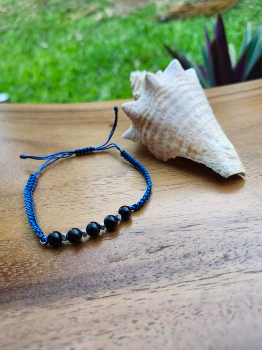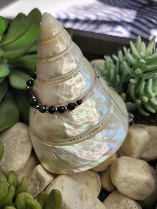 Bracelet ref 77 : Agate noire, onyx et obsidienne