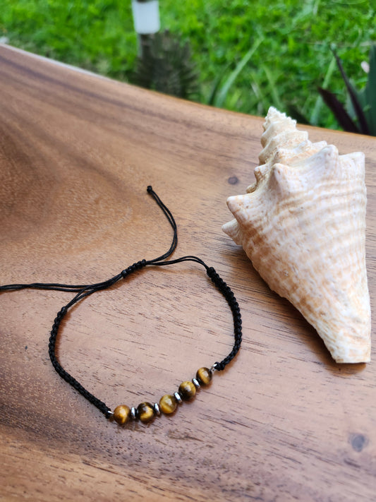 Bracelet réf. 29 : cordon réglable Œil de tigre et Tourmaline