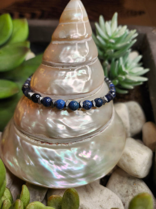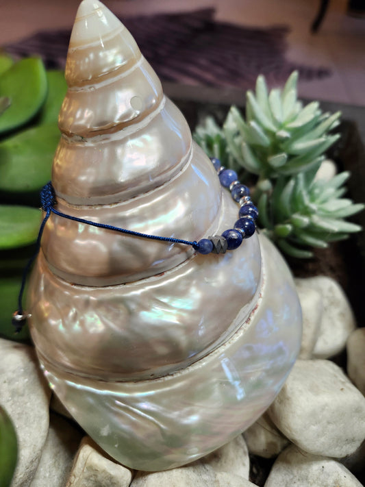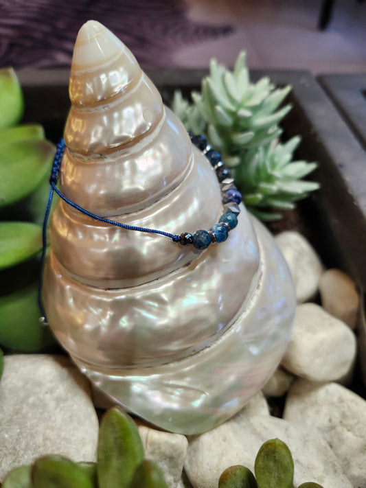 Bracelet ref 100 : Cordon réglable Dumortiérite, Sodalite et Hématite