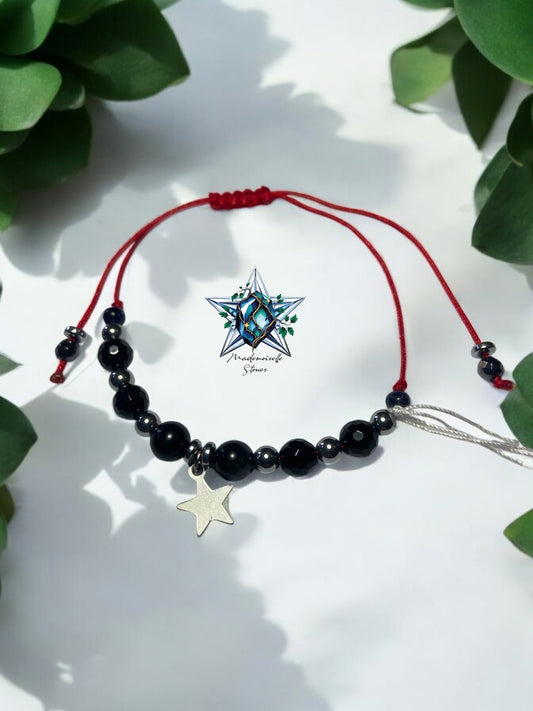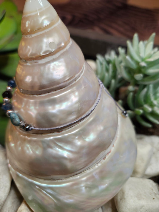 Bracelet ref 67 : Cordon réglable Apatite, onyx et hématite