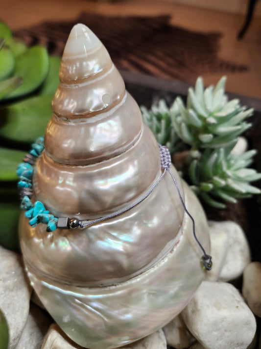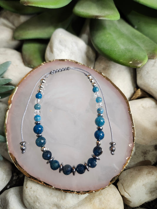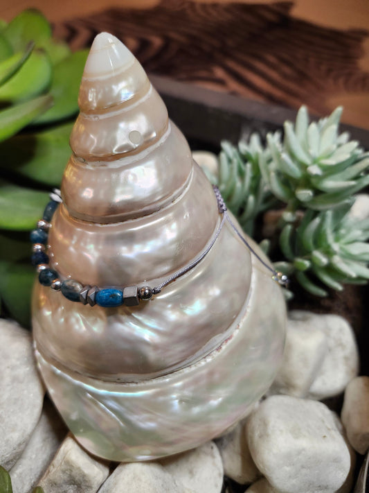 Bracelet ref 94 : Cordon réglable Apatite, Cristal de roche et Hematite
