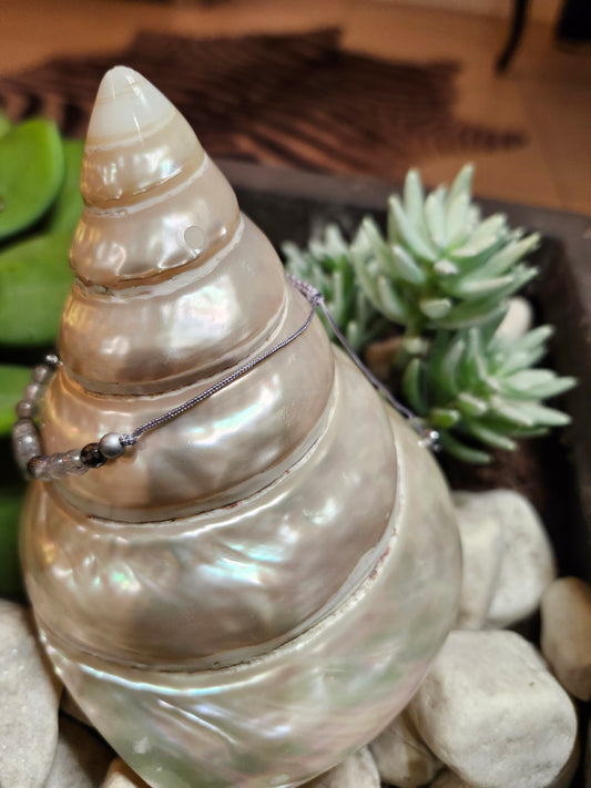 Bracelet réf. 33 : cordon réglable Obsidienne Flocon de neige