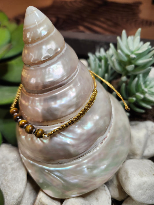 Bracelet ref 73 : Cordon réglable Œil de tigre Cordon tressé doré