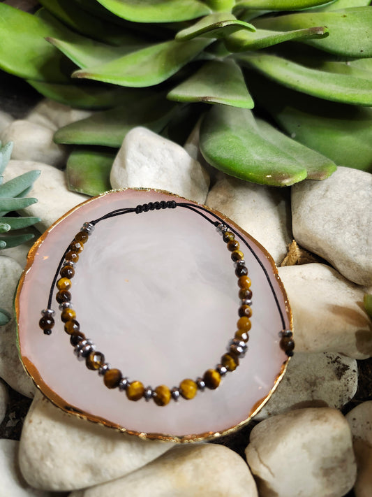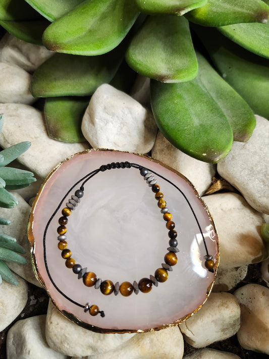 Bracelet ref 91 : Cordon réglable Œil du tigre et Hématite