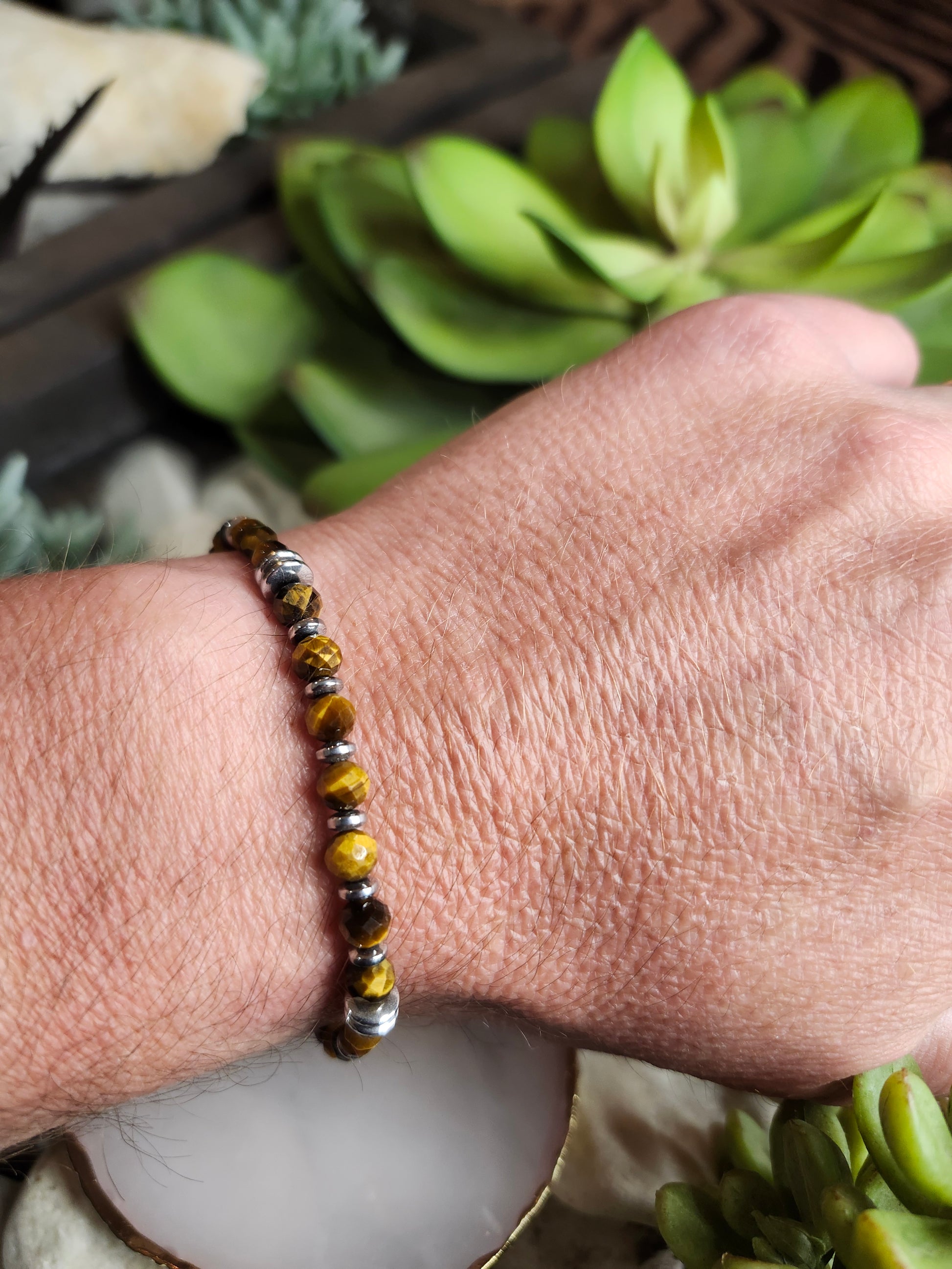 Ce bracelet réglable en cordon est l'accessoire parfait pour ajouter une touche d'élégance à n'importe quelle tenue. Fabriqué avec des perles en œil de tigre et en hématite, il apporte une protection et une énergie positive. Idéal pour les amateurs de pierres naturelles et de bijoux personnalisés.